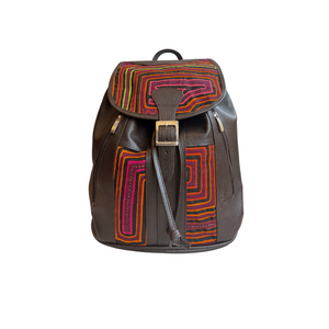 Handcrafted Mola and Leather Backpack I Handmade I Black
