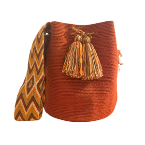 Large Unicolor Wayuu Mochila Bag | Terracotta Strap white triangles | Handmade in Colombia