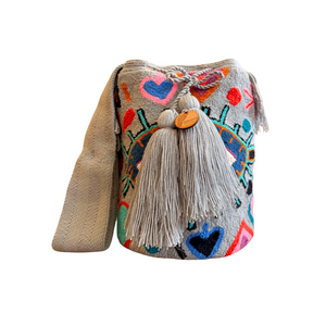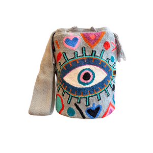 Wayuu Mochila Bag | Large Tapizada | Grey and Blue Eye | Handmade in Colombia