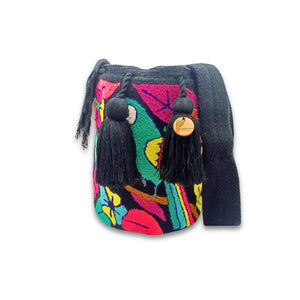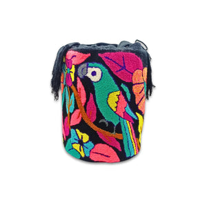 Wayuu Mochila Bag | Large Tapizada | Handmade in Colombia | Black, Green Parrot