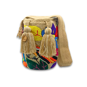 The tapizada bag is made using the punch needle embroidery technique, resulting in stunning textile art. A unique bag that originates on the Northeast most tip of La Guajira Peninsula in Colombia called “Punta Gallinas”. Unlike the rest of the peninsula and its vast, untamed desert, this specific area has a fertile and rich land. The imagery on each bag represents such diversity in flora and fauna.