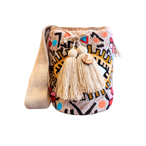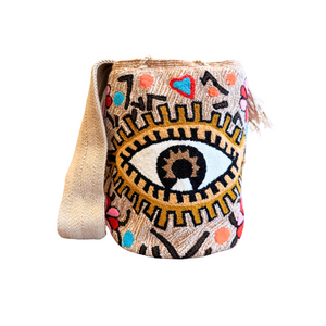 Wayuu Mochila Bag | Large Tapizada | Beige gold eye | Handmade in Colombia