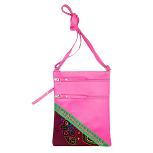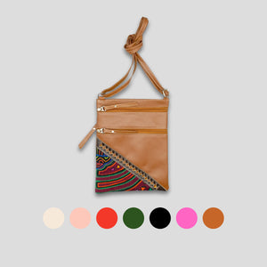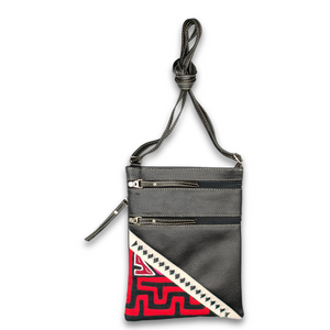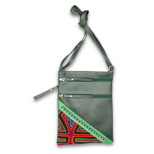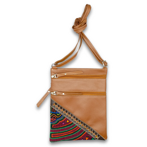 100% Genuine leather from Colombia + Mola appliqué from the Kuna tribe.