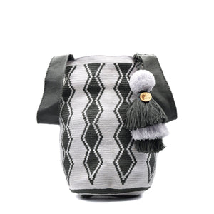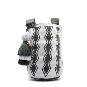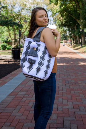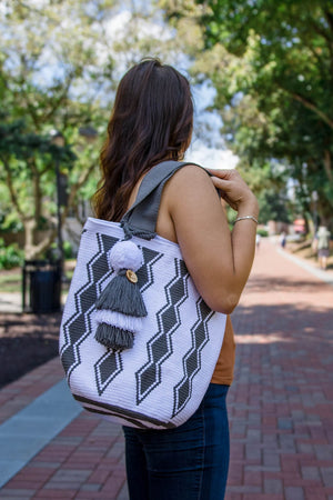 Exclusive Colombian X-Large Tote Wayuu Mochila Bag | White and Grey Lines