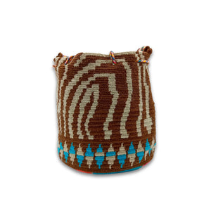 Exclusive Wayuu mochila bag | Medium Woven Crossbody Handmade Gorrito Mochila | Beige Waves Blue and beige traingles