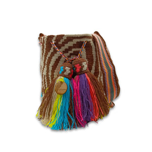 If you love handmade unique pieces then this beautiful medium bag is for you. Crafted by indigenous artisans of the Wayuu Tribe in Colombia, this bag recreates with intricate patterns the life and beliefs of this culture. Each bag is crocheted with precision and durability by a single member of the community.