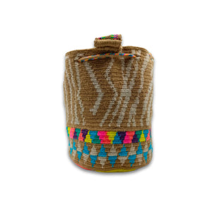 Exclusive Wayuu mochila bag | Medium Woven Crossbody Handmade Gorrito Mochila | Beige Waves Colorfull traingles