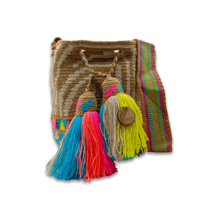 If you love handmade unique pieces then this beautiful medium bag is for you. Crafted by indigenous artisans of the Wayuu Tribe in Colombia, this bag recreates with intricate patterns the life and beliefs of this culture. Each bag is crocheted with precision and durability by a single member of the community.