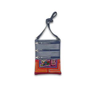 Genuine Leather Crossbody Purse | Passport Cross Body Bag | Leather Bag for Women | Mola Purse | Panama Kuna | Colombian Leather