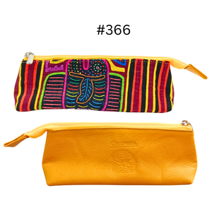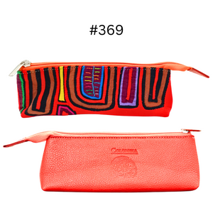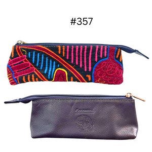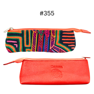 Handcrafted Leather Pencil Case | Mola Appliqué | Single zipper | Gifts ideas | Boho Bag