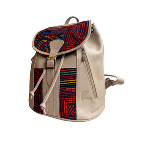 Handcrafted Mola and Leather Backpack I Handmade I Cream