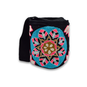 Medium Black pink neon flower Tapizada Wayuu Mochila Bag | Lined Punch Needle Crossbody Shoulder Bag | Handmade in Colombia