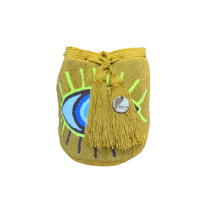Medium Honey Blue Evil Lucky Awaken Eye Tapizada Wayuu Mochila Bag | Lined Punch Needle Crossbody Shoulder Bag | Handmade in Colombia