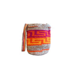 Mini Traditional Wayuu Mochila Bag | Woven Crossbody | Handmade | Beige and pink
