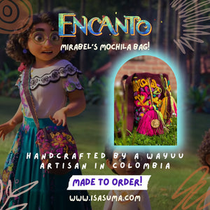 We can't get enough of the new Disney movie Encanto, I mean, how could you, right? So, we decided to work with our Wayuu artisans to create a beautiful handmade Mirabel punch needle"tapizada" bag ready to Pre-Order.