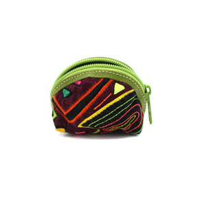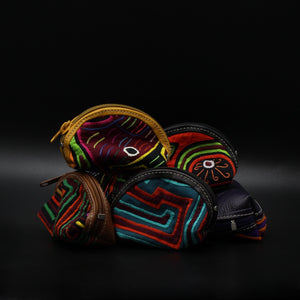 Mola + Leather Change Coin Purse | Handmade Mola Kuna Tribe