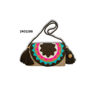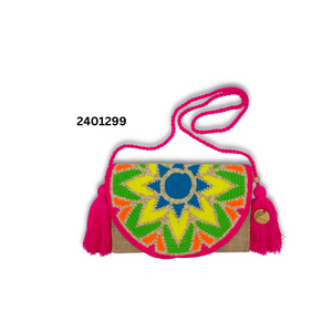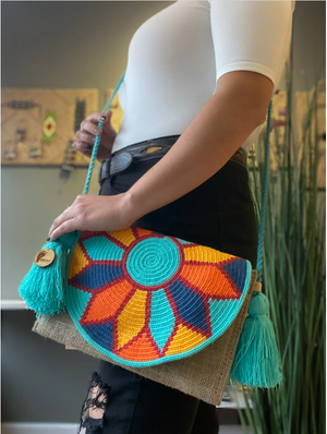If you love handmade unique pieces then this beautiful clutch is for you. Crafted by indigenous artisans of the Wayuu Tribe in Colombia, this bag recreates with intricate patterns the life and beliefs of this culture.