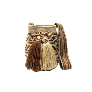 Wayuu mochila bag | Medium Tradicional Deluxe | Beige and Brown