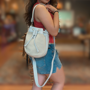 This beautiful and exclusive mochila bag is a modern fusion of the Wayuu crochet craft and leather work from artisans in Colombia.